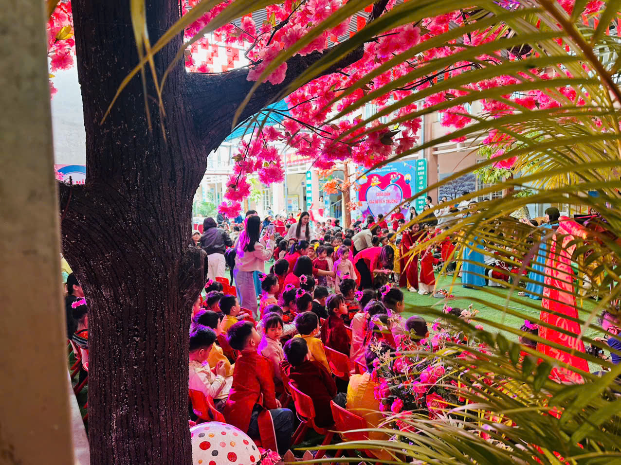 Chương trình thu hút được sự quan tâm, đồng hành của đông đảo các bậc phụ huynh các khối lớp, cha mẹ đã trang bị cho con em mình trang phục, phụ đạo để tham gia chương trình rất chu đáo. Các bé xúng xính trong những bộ áo dài tết sặc sỡ đủ màu, tay cầm hoa náo nức tới trường.