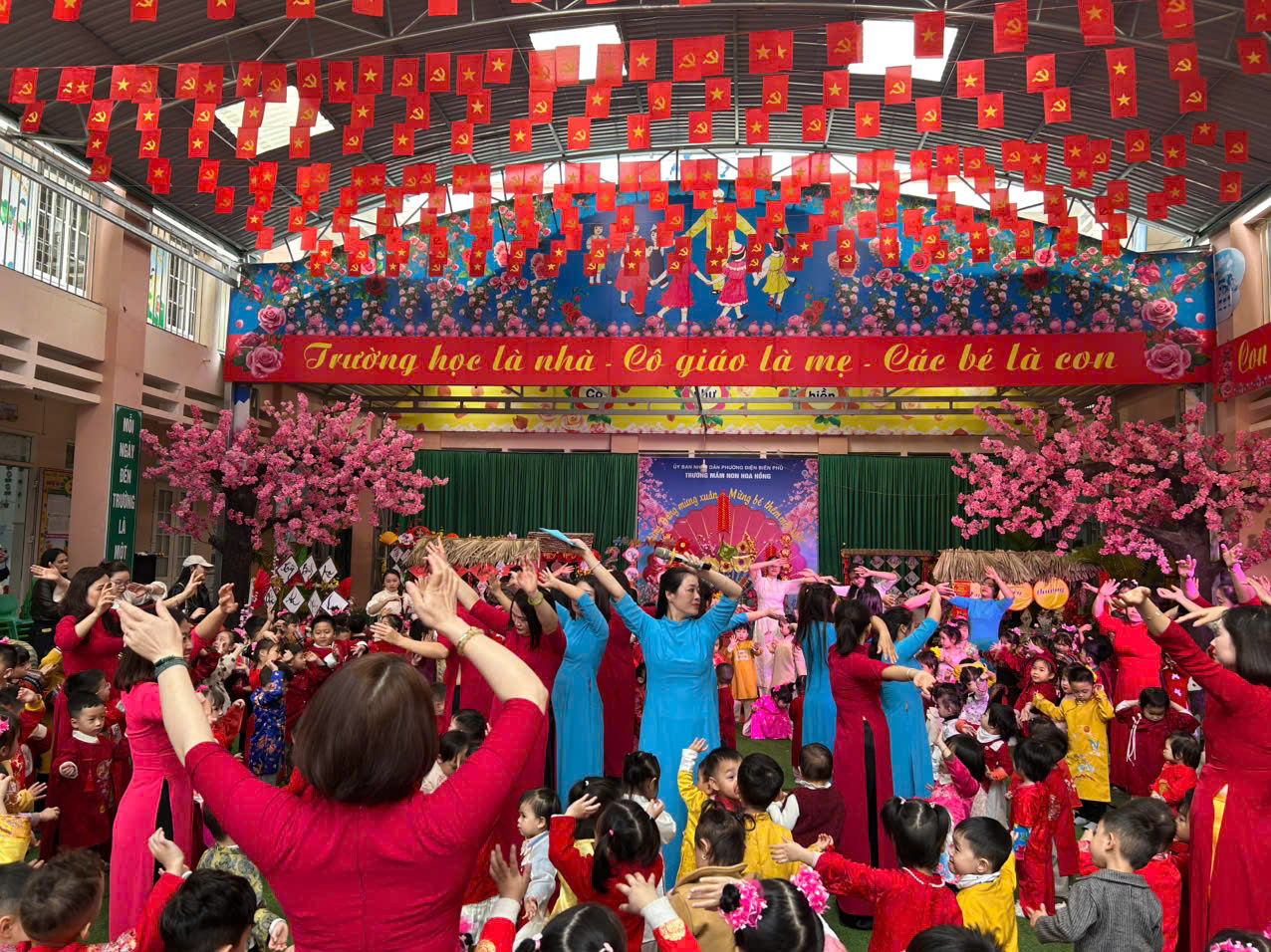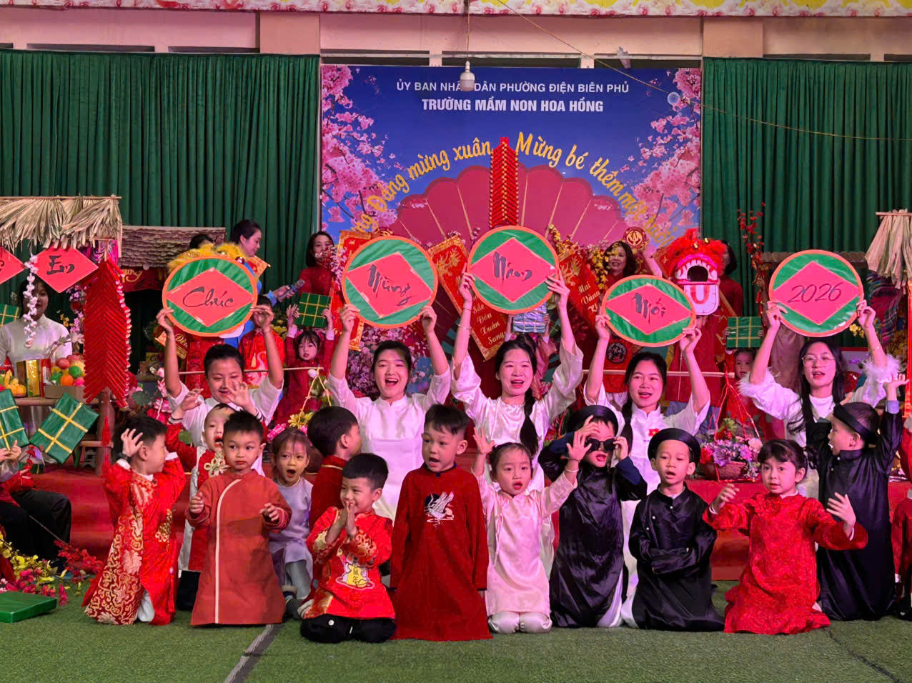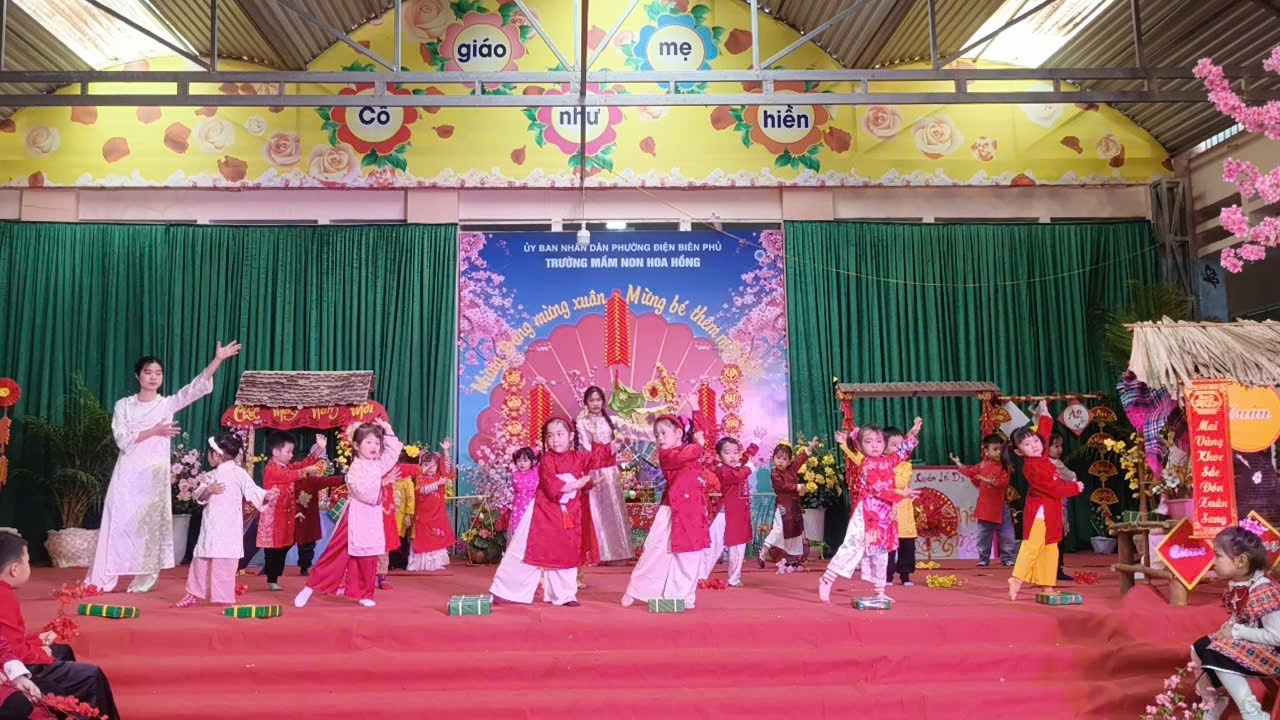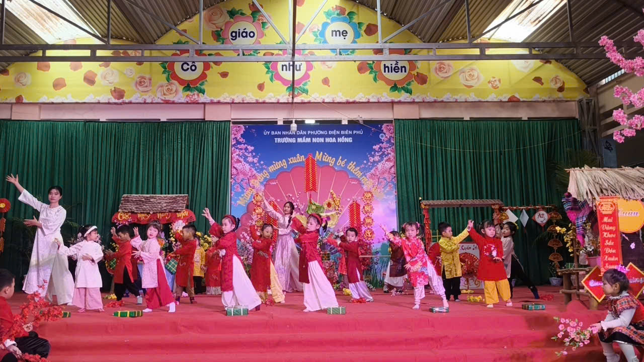 Bên thềm xuân mới Bính Ngọ, mừng Đại hội đại biểu toàn quốc lần thứ XIV của Đảng thành công rực rỡ, Mừng Đảng thêm tuổi mới trường mầm non Hoa Hồng hân hoan tổ chức chương trình “MỪNG XUÂN DÂNG ĐẢNG - MỪNG BÉ THÊM MỘT TUỔI ” nhằm mang đến cho các con một ngày hội thật vui tươi, ấm áp, giúp các bé cảm nhận được bầu không khí rộn ràng khi tết đến xuân sang, cảm nhận được niềm vui và hạnh phúc khi được sinh ra trên đất nước yên bình, no ấm, được lớn lên trong vòng tay yêu thương của gia đình, thầy cô…